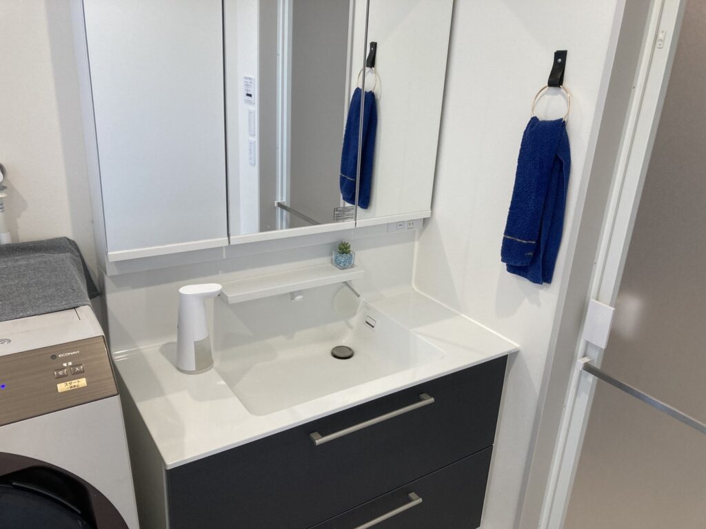 脱衣所の広さの割には大きめの洗面台を採用できたので