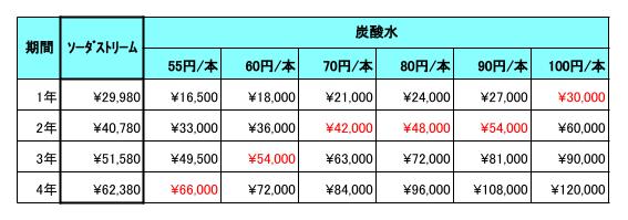 こちらがソーダストリームと炭酸水を定期購入した場合の比較表になります。